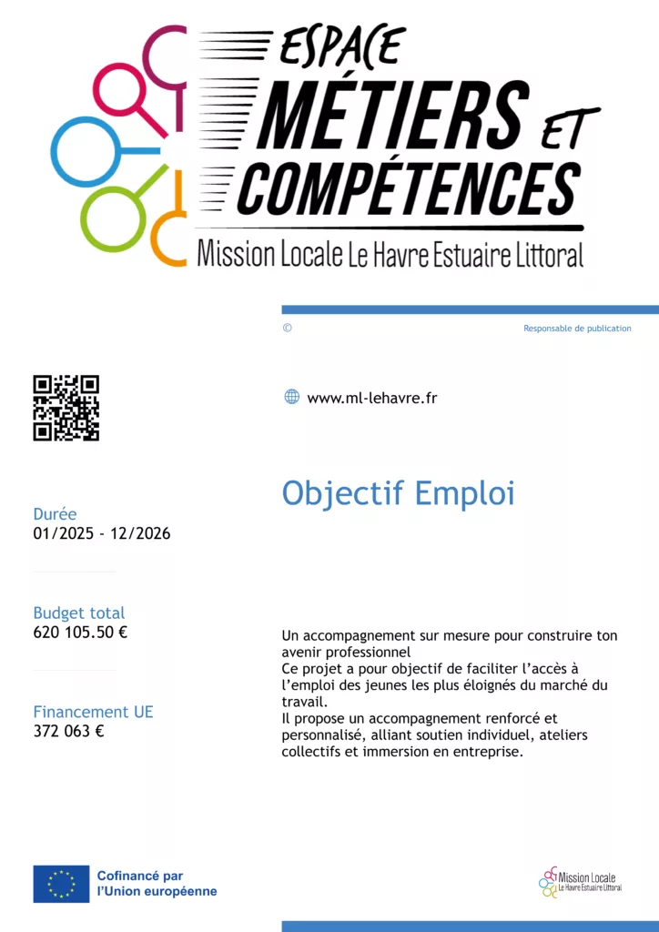 Le projet « DEFI ORIENTATION ET FORMATION : EVEILLE TON POTENTIEL », co-financé par la Région Normandie et l’Union européenne, propose des actions collectives interactives de découverte et de renforcement des connaissances sur les métiers et formations pour faciliter l’insertion des usagers âgés de 16 à 25 ans vers l’emploi durable en renforçant et en adaptant l’offre de service de la Mission Locale Le Havre Estuaire Littoral.